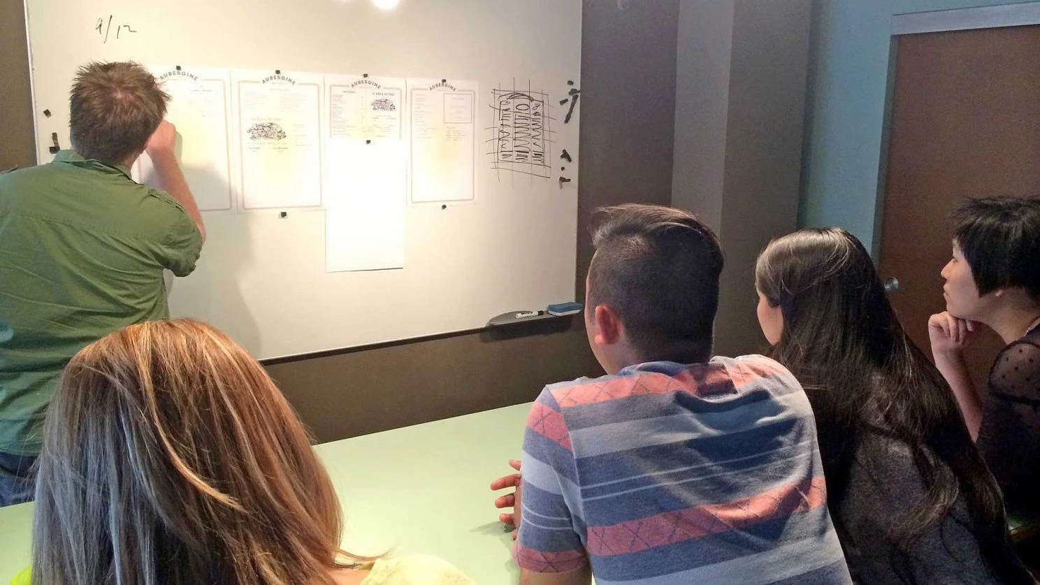 Digging into design directions and layouts on the crit wall